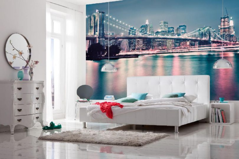 Для дополнительной коррекции пространства, можно повесить зеркало напротив ваших фотообоев, так вы добьётесь визуального увеличения площади вашей комнаты.
