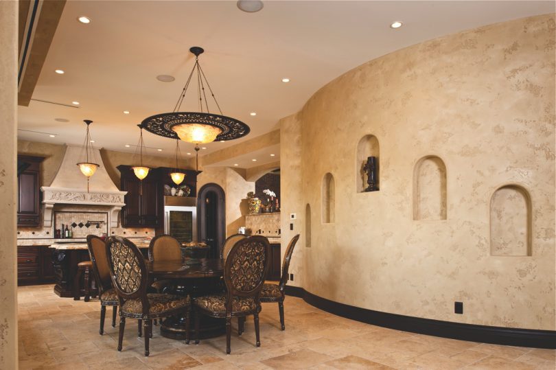 Среди прочих достоинств также выделяют и специфическое внутреннее свечение, которым обладает нанесенная на стены отделка после высыхания. Отметим, что благодаря своей пластичности, венецианская штукатурка может отлично покрывать любые поверхности, в том числе колонны, ниши, другие декоративные элементы.