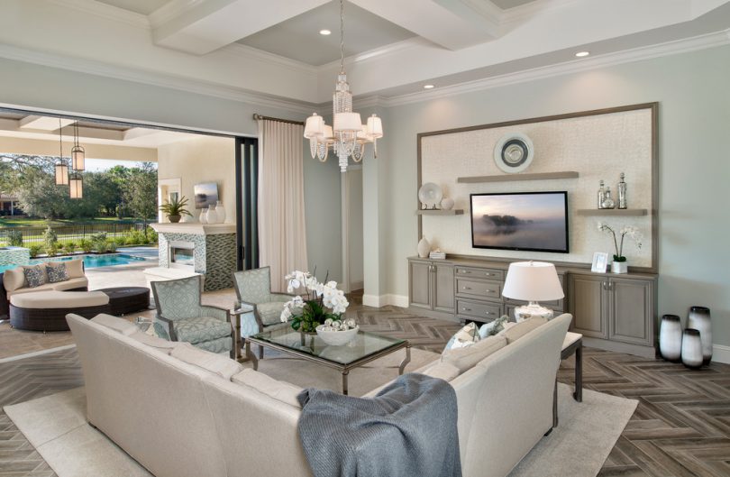 Очень часто обычный камин заменяют искусственным. Эта панель располагается под телевизором или несколько в стороне от него, благодаря чему в комнате создается атмосфера тепла и уюта.