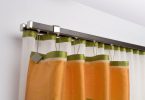 Любые современные карнизы для штор будут иметь завершённый вид, если к ним правильно подобрать дополнительные декоративные элементы. К примеру, можно подобать клипсы для штор – данное приспособление в виде магнита крепится к стене в форме кольца, куда продевают ткань шторы. Клипса может быть сделана в виде декоративного камня или цветка.