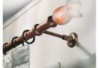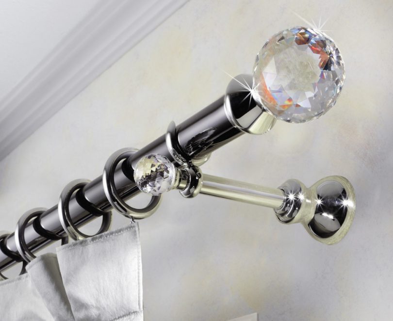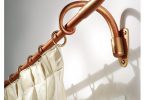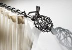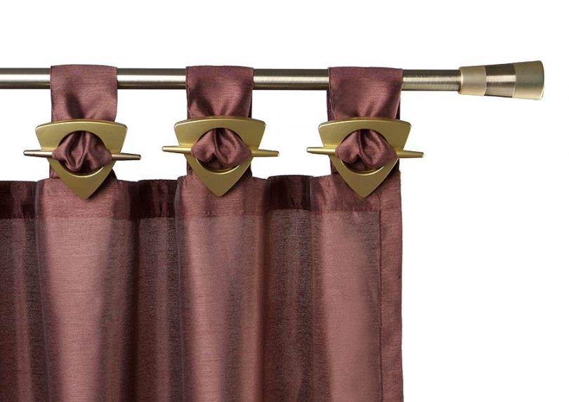 Кронштейны также можно выгодно обыграть украшениями в виде различных бабочек, цветов и прочих декоративных элементов. Наконечники являются неотъемлемой частью конструкции, так как удерживают ткань на штанге и не позволяют ей съезжать по бокам. Выбор этих элементов настолько разнообразен, что позволит без проблем придать нужный по стилю вид для оформления оконного проёма.