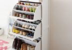Перед установкой нужно обязательно сделать замер пространства, где планируется поставить полку для обуви. Для небольшой прихожей идеальным вариантом будет узкая (20-30 см) и высокая полочка, в более просторном помещении хорошо будет смотреться закрытая тумба с шириной 60-90 см.