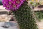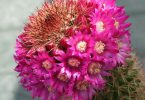 Названия кактусов порой поражают. Так, Маммиллярия – необычный вид, его ствол покрыт мягкими и длинными иголками. Внешним видом цветок напоминает волосяной шарик. Во время цветения Маммиллярия покрывается красными, фиолетовыми или белыми цветками, расположенными по кругу.