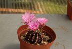 - Гимнокалициум Михановича – это интересный цветущий представитель. Цветения не придется долго ждать, бутон появится уже в первый год жизни растения. Данный вид очень удобен для выращивания в домашних условиях. На его поверхности нет колючек и ворса. Для активного роста Гимнокалициума достаточно обеспечить приток большого количества естественного солнечного света. В летнее время вазон лучше переместить в тень;