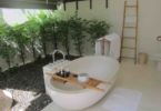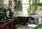 Если размеры ванной комнаты позволяют, можно из дерева смонтировать надежную и оригинальную полку для цветов в ванной комнате. Пригодится она и для размещения аксессуаров, таких как свечи и ароматические композиции масел и солей.