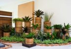 Кроме того, можно использовать металл, ветки, спилы деревьев, ротанг, старую мебель и технику, например, велосипеды.