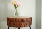 Для живых цветов можно сделать напольную подставку из простого натурального материала — спилов дерева. Можно позаботиться и приготовить их самостоятельно или приобрести на специализированном рынке. Три шага и подставка готова: