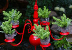 - на основание — ставим композицию из маленьких кашпо или один красивый цветок.