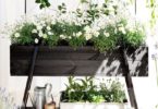 Чтобы сделать раздвижной стеллаж для цветов из дерева, необходимо обладать определенными знаниями. По чертежу нужно собрать мобильную конструкцию, которая в мгновение из узкого полотна превращается в стеллаж с большой площадью для размещения цветов, книг, посуды. Этот вариант заинтересует владельцев небольших квартир и тех, кто часто меняет жилище.