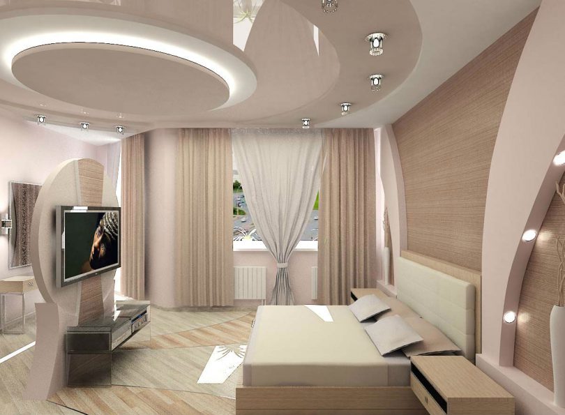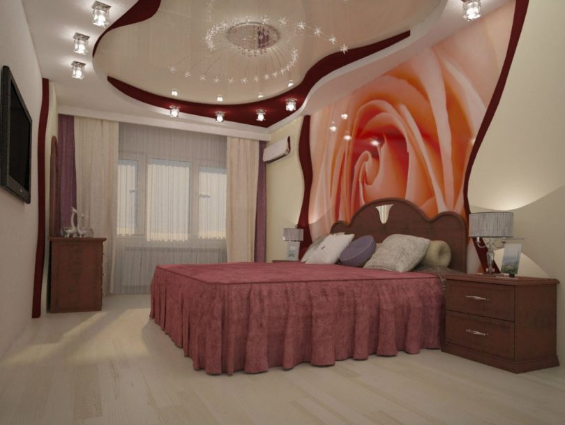 Несмотря на то, что в спальне человек, в основном, спит, это не является причиной считать, что интерьер данного помещения не имеет значения. Ведь от обстановки в комнате зависит то, с каким настроением человек отойдет ко сну, и, соответственно, то, насколько он отдохнет и восстановит свои силы. Важным элементом интерьера помещения является потолок. И его дизайн вносит весьма немалый вклад в то, как воспринимается помещение в целом. Мало того, если потолок в спальне красив и оригинально оформлен, то именно он может придать помещению неповторимую индивидуальность.