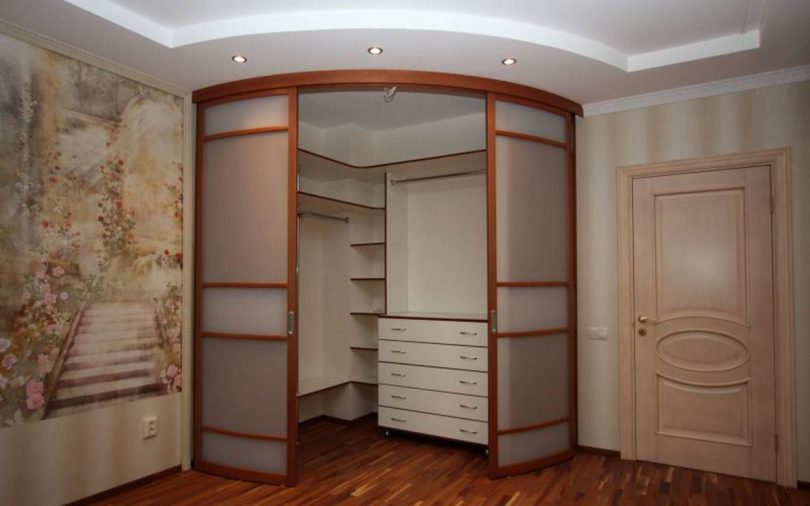 К тому же полукруг позволяет увеличить внутреннее пространство самого шкафа, при этом спальня не становится меньше и неудобнее.