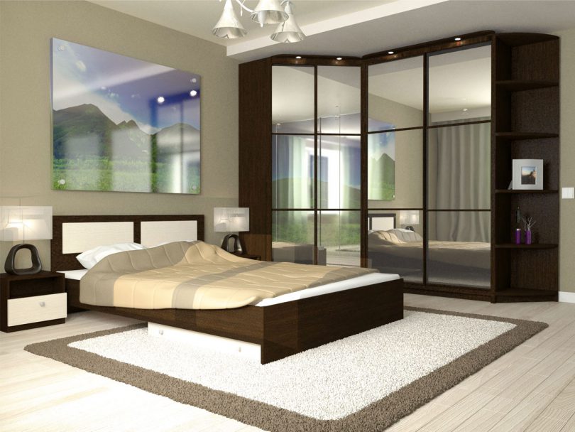 Угловые шкафы-купе являются безусловными лидерами покупательских предпочтений для обстановки спальной комнаты. Они экономят место, их зеркальные стенки позволяют визуально расширить внутреннее пространство помещения.