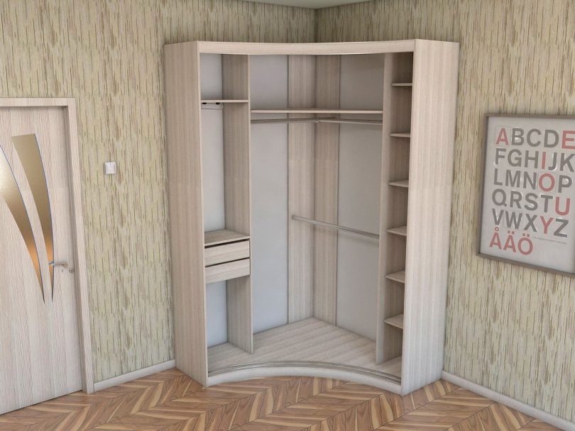 Еще один плюс — конструкция углового шкафа позволяет придать ему разные формы.