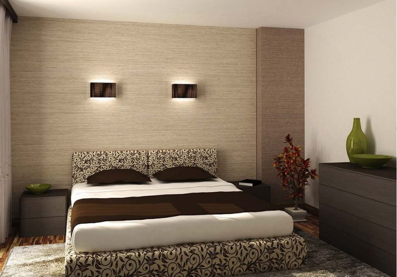 Для маленького помещения не следует покупать полотна с крупными рельефными и контрастными рисунками. Чем меньше помещение, тем мельче должны быть узоры и приглушеннее цвета. Если есть желание выбрать яркие контрастные обои для спальни, лучше сделать из них небольшую вставку у изголовья кровати.
