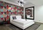 Контрастный вид обоев должен привлекать к себе внимание. На нем делается основной акцент в интерьере спальной комнаты. Контрастное покрытие выделяется насыщенными оттенками, крупными орнаментами или рельефной поверхностью. Оно может покрывать всю стену или совсем небольшой ее участок, напоминая панно.