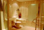 Осветительные приборы, прежде всего, должны быть защищены от попадания влаги. Интенсивность освещения повышает уровень комфорта и выгодно подчёркивает элементы декора. Настенные или встроенные, маленькие точечные или большие подвесные – это уже дело вкуса. Очень удобно устанавливать диммер, с помощью которого регулируется уровень освещения.