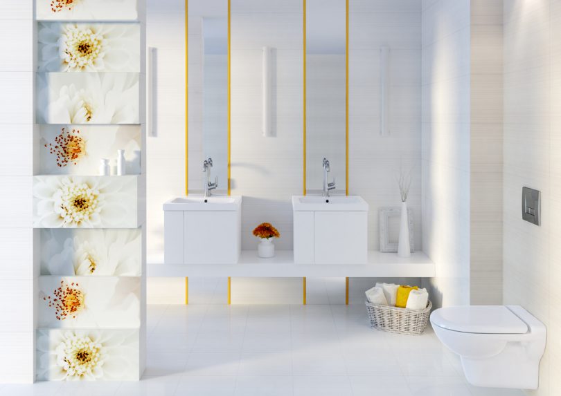 Для того чтобы зрительно прибавить высоту стенам, дизайнеры рекомендуют использовать белый кафель или светлые оттенки. Декоративные бордюры будут уместны, но они не должны быть слишком контрастными относительно основного цвета стен.