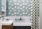 Еще один легкий и модный вариант покраски стен — принт зигзаг или шеврон. Для его создания поверхность сначала покрывают белой краской, а затем наносят полосы контрастного оттенка. Чтобы линии получились ровными, в качестве трафарета используется малярная лента. Дизайнеры рекомендуют применять в интерьере ванной зигзаг в светлых оттенках.