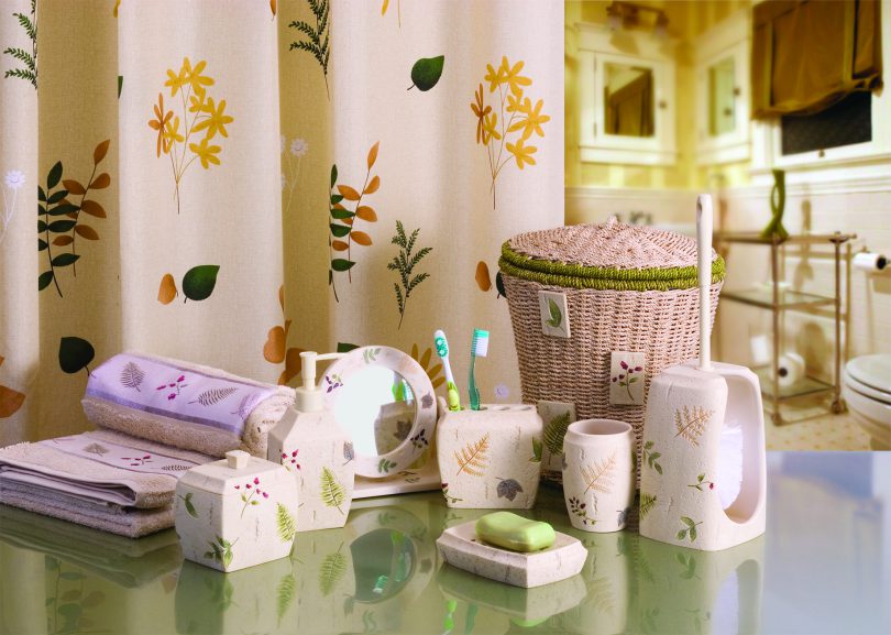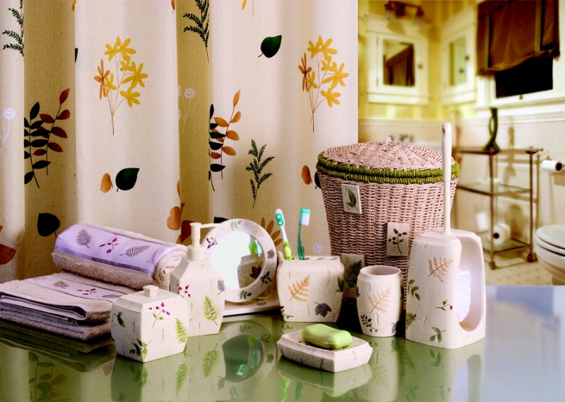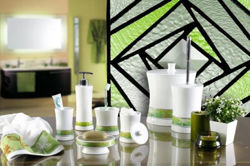 Аксессуары для ванной комнаты должны гармонично вливаться в ее интерьер. Если вы предпочитаете природный дизайн, то элементы декора нужно выдерживать в зеленых тонах. Здесь уместны зеленые полотенца, мыльницы в форме цветов.