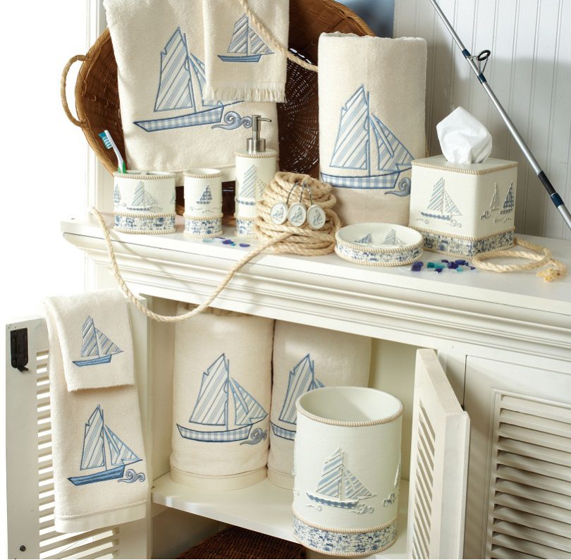 - Очень близка для ванных комнат морская атрибутика: раковины, морские звезды, емкости с разноцветным песком, напомнят о безмятежном отдыхе на морском берегу.