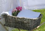 Не менее интересным вариантом считается корзина для белья плетеная. Выполнена она из лозы и также считается безопасным материалом для хранения одежды, даже детской. Такая емкость очень удобна, так как незначительный вес позволяет перемещать ее по всей квартире без особых сложностей. Плетеные корзины для белья вписываются в любую стилистику ванных комнат.
