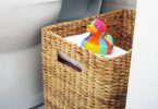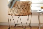 Еще один интересный вариант — это тканевая корзина. Она может представлять собой обыкновенный завязывающийся мешок или же полноценную складную конструкцию. Стоит учесть, что, несмотря на удобство подобной коробки, тканевая основа не является долговечной и служить будет не более трех лет. Плюс ко всему, емкость для белья складная также периодически нуждается в стирке, как и вещи, которые кладутся в нее.
